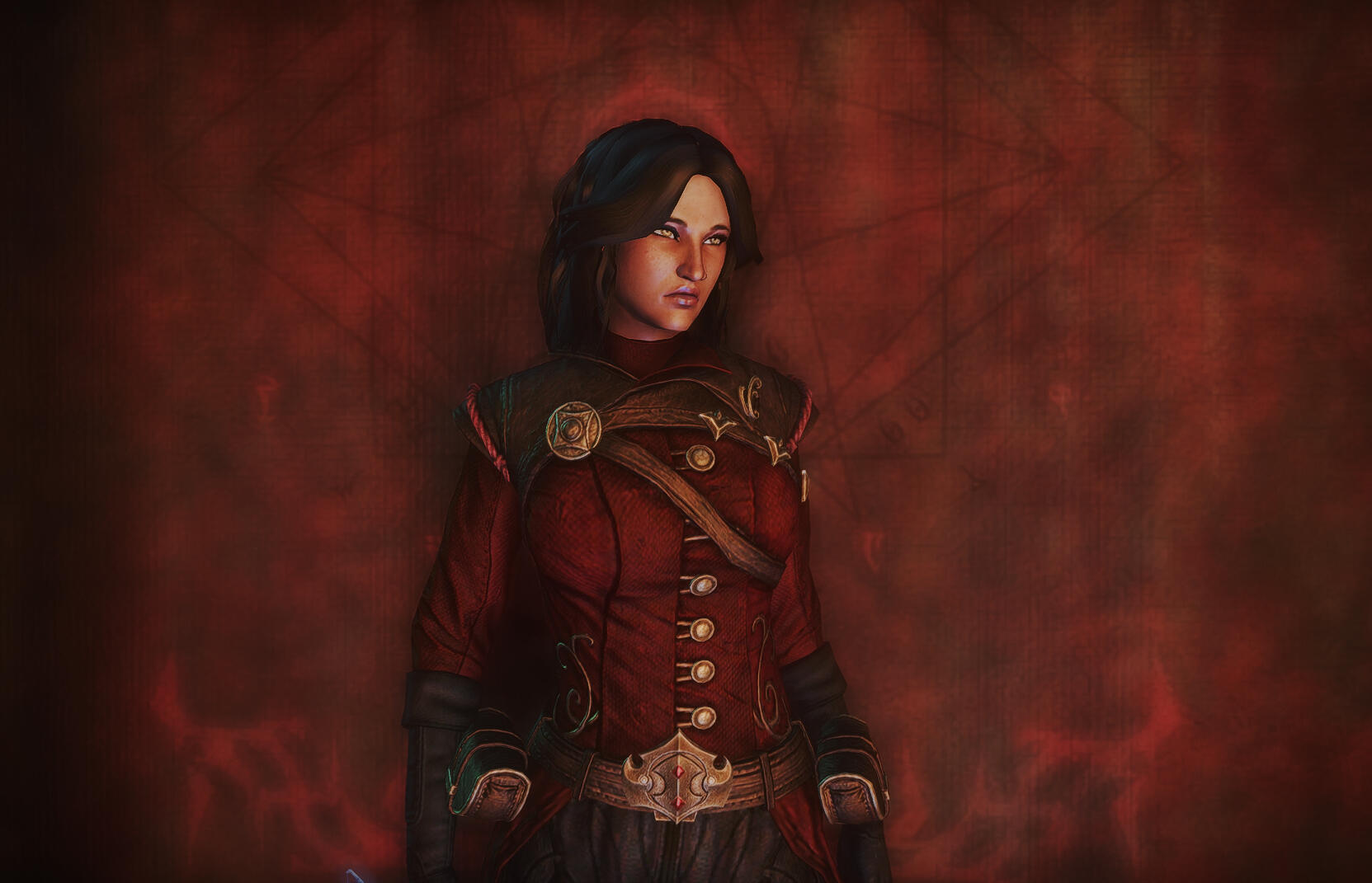 → merchants of drink and drug will find an eager customer in Niko - despite her career of hunting criminals, she seeps keen on looking the other way when it comes to this.⊱ Magic Most Foul - It goes beyond what is typically deemed the 'acceptable' form of Conjuration, black-stained fingers reaching beyond this plane to bring back more than just simple blades and unwitting creatures. She's torn lightning from the very skies of Attribution's Share as her scourge and breathed fire taken from the storms of the Deadlands, exerting her will over both Oblivion and Nirn (much as a mortal can). It poisons and corrupts that of which should be natural, perhaps a more refined, Imperialized version of Reach witchery - Or that could just be a nasty rumor on account of her blood.