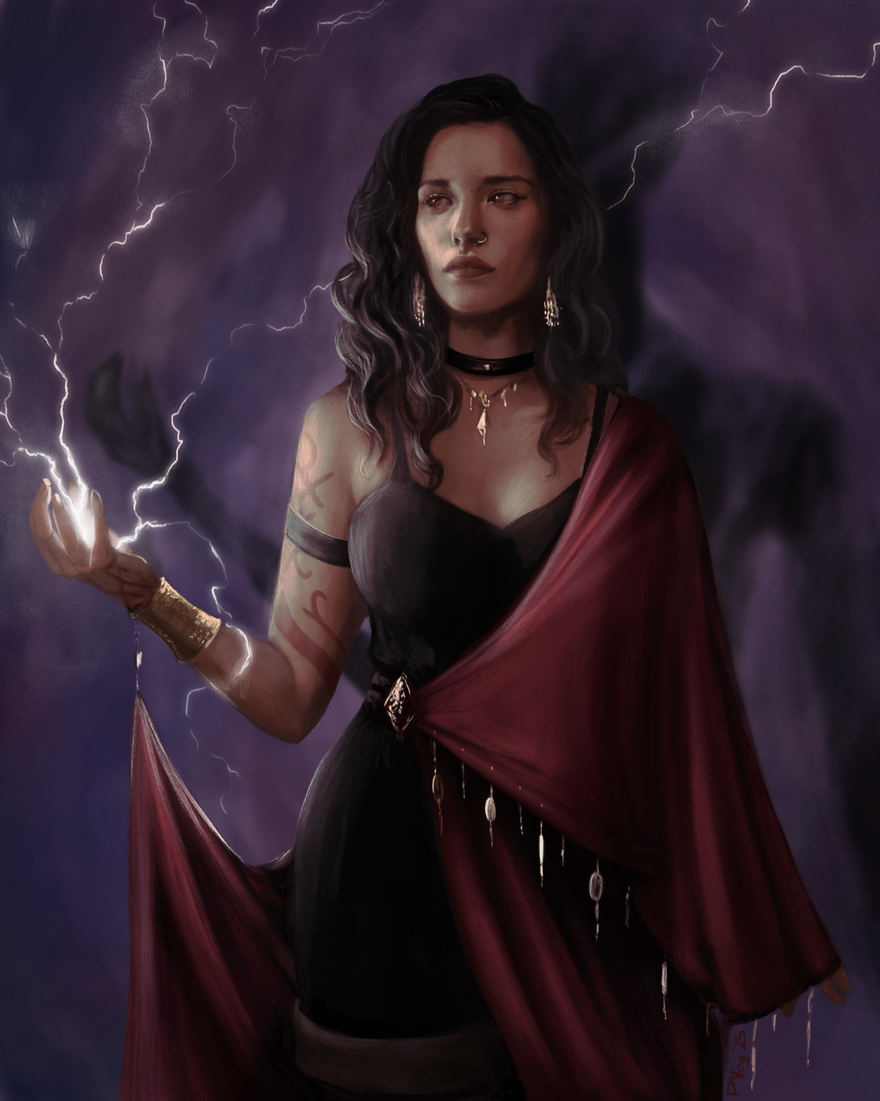 | ATTIRE | Often includes some touch of red to match her tattoos. Rotates between risqué Nibenese moth-silk robes, and padded leather armor, never without an absurd amount of gold jewelry. |